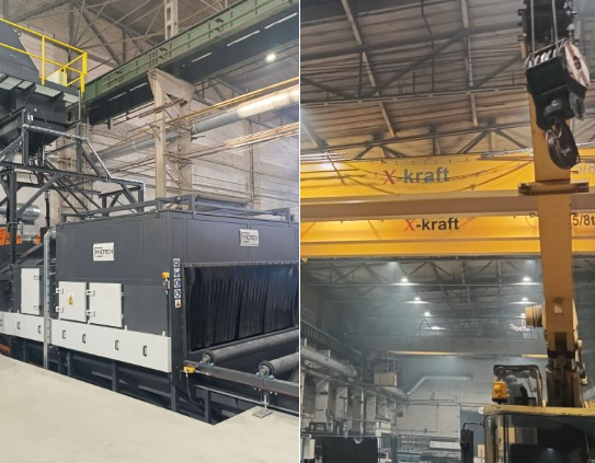 W ramach modernizacji warsztatu zrealizowana została instalacja nowych suwnic X-Kraft o nośności 25/8 T oraz uruchomienie automatycznej śrutownicy HORIBLASTER 3.0X0.6/8R/11.